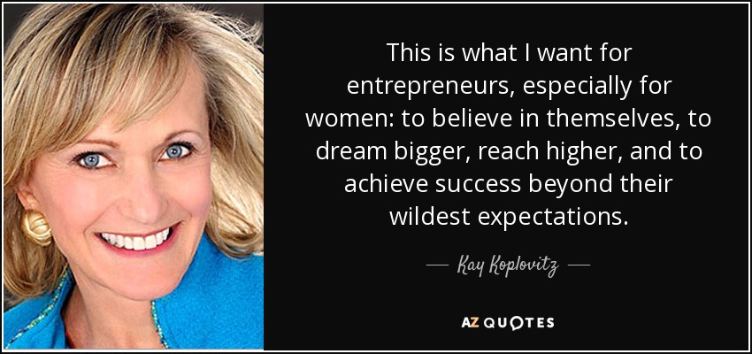 This is what I want for entrepreneurs, especially for women: to believe in themselves, to dream bigger, reach higher, and to achieve success beyond their wildest expectations.