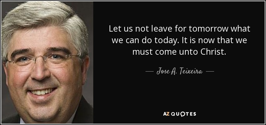 Let us not leave for tomorrow what we can do today. It is now that we must come unto Christ.