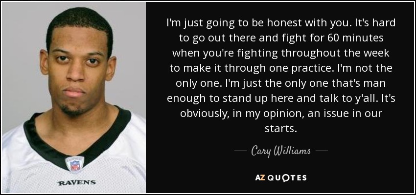 I'm just going to be honest with you. It's hard to go out there and fight for 60 minutes when you're fighting throughout the week to make it through one practice. I'm not the only one. I'm just the only one that's man enough to stand up here and talk to y'all. It's obviously, in my opinion, an issue in our starts.