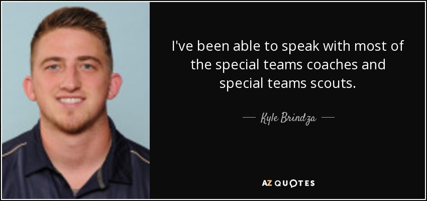 I've been able to speak with most of the special teams coaches and special teams scouts.