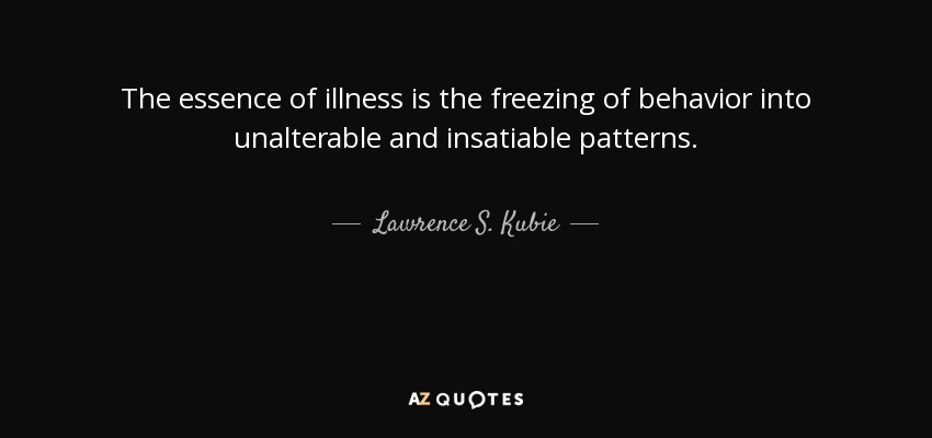 The essence of illness is the freezing of behavior into unalterable and insatiable patterns.