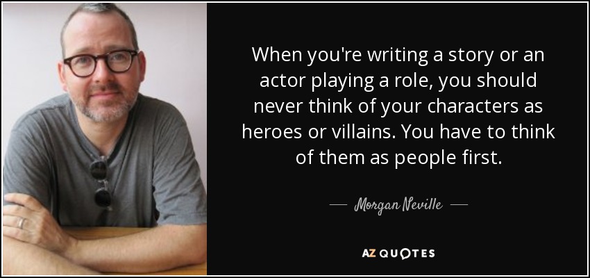 When you're writing a story or an actor playing a role, you should never think of your characters as heroes or villains. You have to think of them as people first.