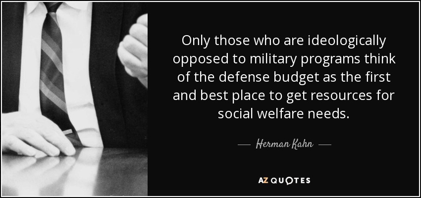Only those who are ideologically opposed to military programs think of the defense budget as the first and best place to get resources for social welfare needs.
