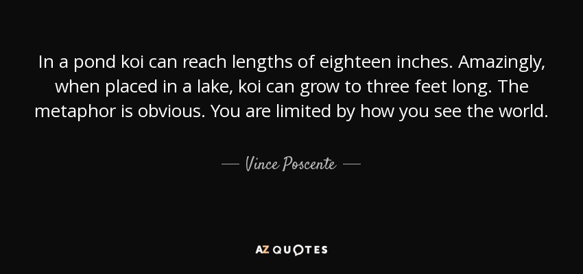 In a pond koi can reach lengths of eighteen inches. Amazingly, when placed in a lake, koi can grow to three feet long. The metaphor is obvious. You are limited by how you see the world.