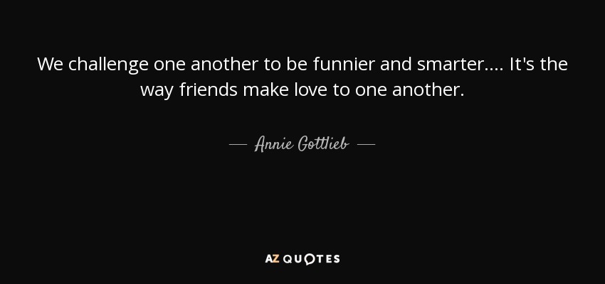 We challenge one another to be funnier and smarter.... It's the way friends make love to one another.