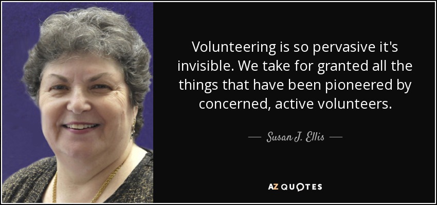 Volunteering is so pervasive it's invisible. We take for granted all the things that have been pioneered by concerned, active volunteers.