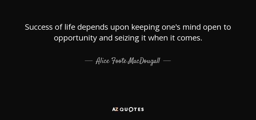 Success of life depends upon keeping one's mind open to opportunity and seizing it when it comes.