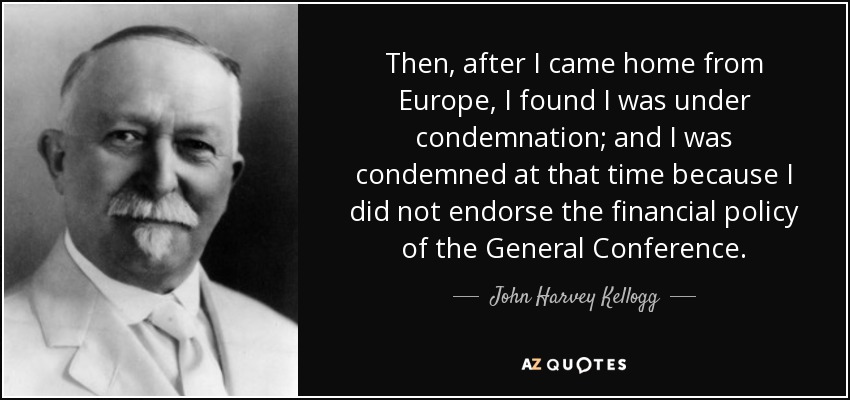 Then, after I came home from Europe, I found I was under condemnation; and I was condemned at that time because I did not endorse the financial policy of the General Conference.