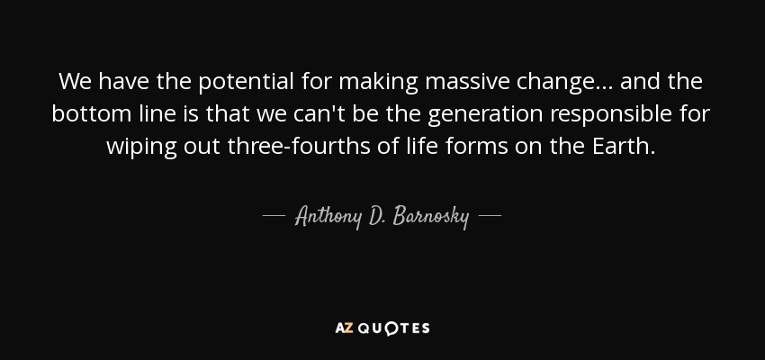 We have the potential for making massive change... and the bottom line is that we can't be the generation responsible for wiping out three-fourths of life forms on the Earth.