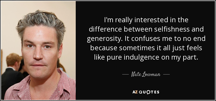 I'm really interested in the difference between selfishness and generosity. It confuses me to no end because sometimes it all just feels like pure indulgence on my part.