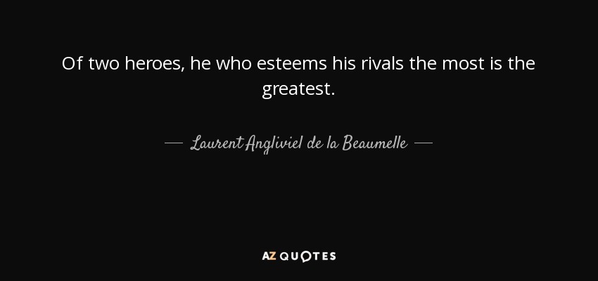 Of two heroes, he who esteems his rivals the most is the greatest.