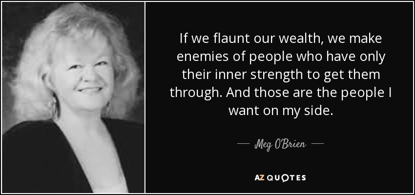 If we flaunt our wealth, we make enemies of people who have only their inner strength to get them through. And those are the people I want on my side.