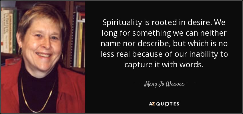 Spirituality is rooted in desire. We long for something we can neither name nor describe, but which is no less real because of our inability to capture it with words.
