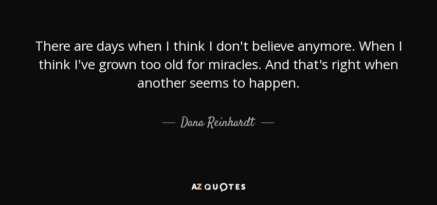 There are days when I think I don't believe anymore. When I think I've grown too old for miracles. And that's right when another seems to happen.