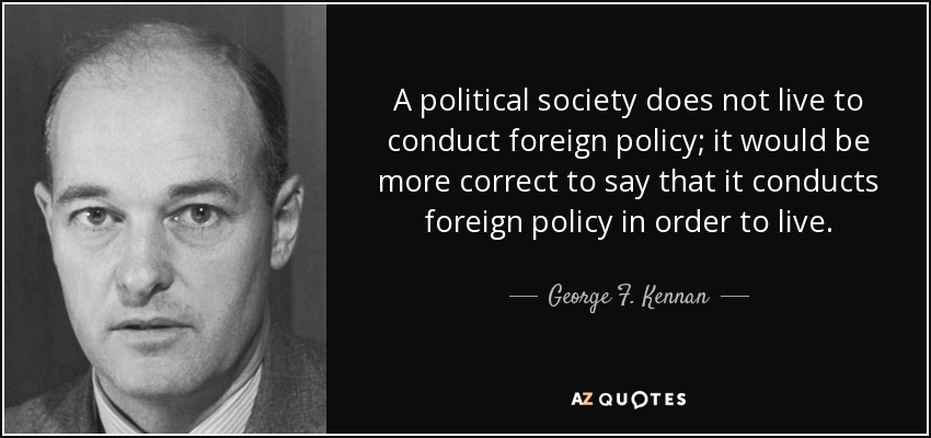A political society does not live to conduct foreign policy; it would be more correct to say that it conducts foreign policy in order to live.