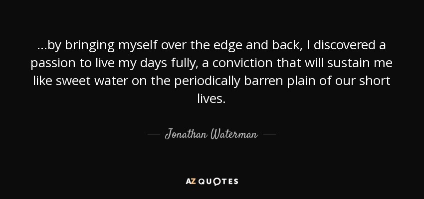 ...by bringing myself over the edge and back, I discovered a passion to live my days fully, a conviction that will sustain me like sweet water on the periodically barren plain of our short lives.