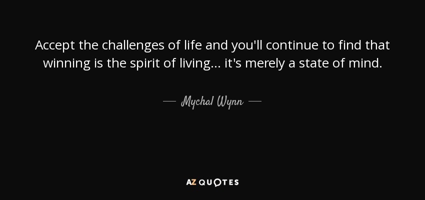 Accept the challenges of life and you'll continue to find that winning is the spirit of living . . . it's merely a state of mind.