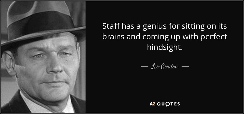 Staff has a genius for sitting on its brains and coming up with perfect hindsight.