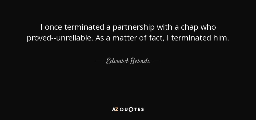 I once terminated a partnership with a chap who proved--unreliable. As a matter of fact, I terminated him.