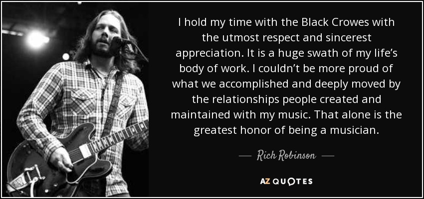 I hold my time with the Black Crowes with the utmost respect and sincerest appreciation. It is a huge swath of my life’s body of work. I couldn’t be more proud of what we accomplished and deeply moved by the relationships people created and maintained with my music. That alone is the greatest honor of being a musician.