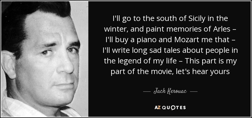 I'll go to the south of Sicily in the winter, and paint memories of Arles – I'll buy a piano and Mozart me that – I'll write long sad tales about people in the legend of my life – This part is my part of the movie, let's hear yours