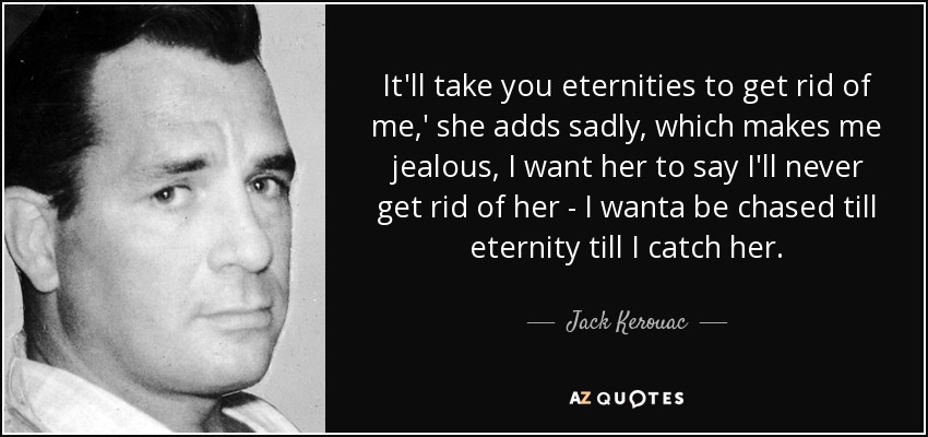 It'll take you eternities to get rid of me,' she adds sadly, which makes me jealous, I want her to say I'll never get rid of her - I wanta be chased till eternity till I catch her.