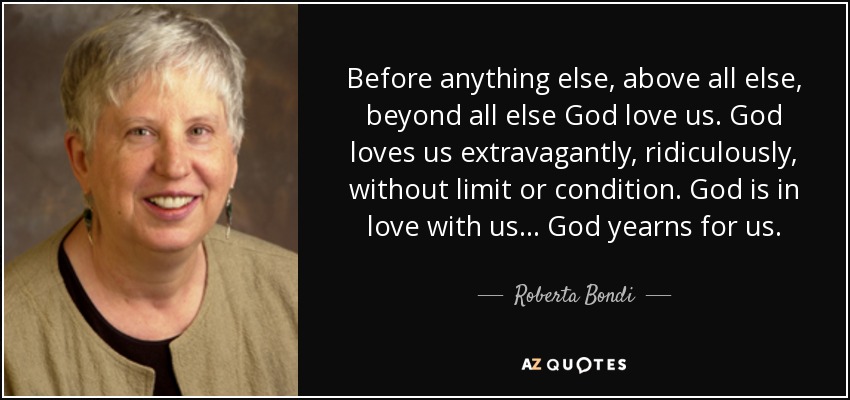Before anything else, above all else, beyond all else God love us. God loves us extravagantly, ridiculously, without limit or condition. God is in love with us... God yearns for us.