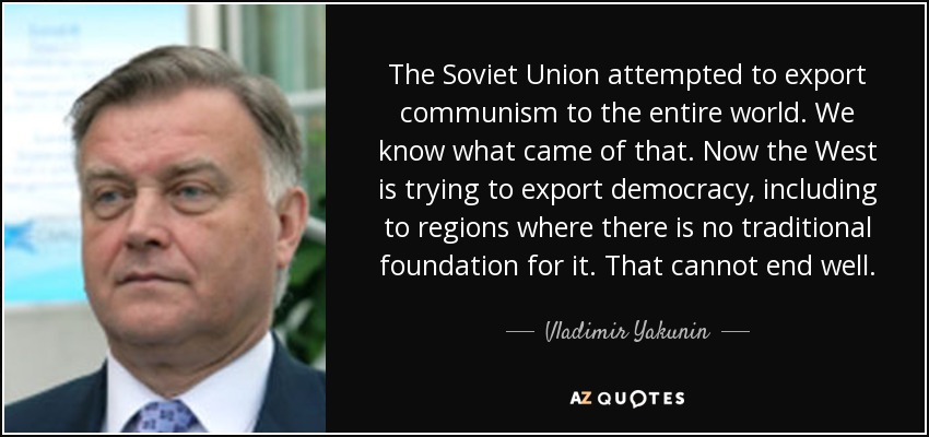 The Soviet Union attempted to export communism to the entire world. We know what came of that. Now the West is trying to export democracy, including to regions where there is no traditional foundation for it. That cannot end well.