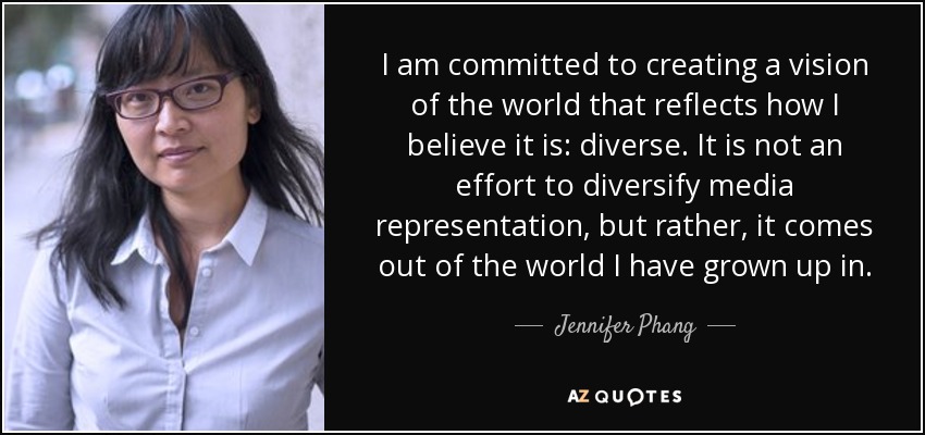 I am committed to creating a vision of the world that reflects how I believe it is: diverse. It is not an effort to diversify media representation, but rather, it comes out of the world I have grown up in.