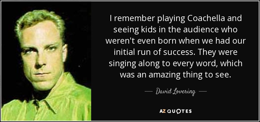 I remember playing Coachella and seeing kids in the audience who weren't even born when we had our initial run of success. They were singing along to every word, which was an amazing thing to see.