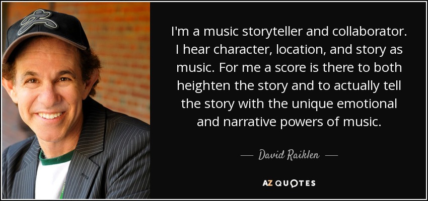 I'm a music storyteller and collaborator. I hear character, location, and story as music. For me a score is there to both heighten the story and to actually tell the story with the unique emotional and narrative powers of music.