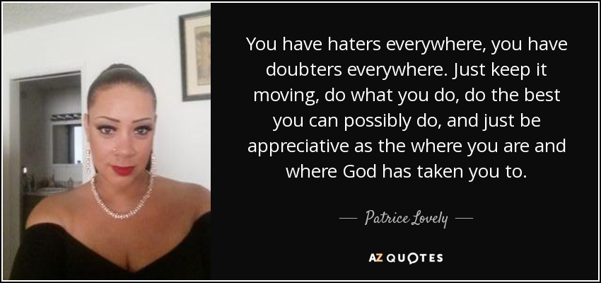 You have haters everywhere, you have doubters everywhere. Just keep it moving, do what you do, do the best you can possibly do, and just be appreciative as the where you are and where God has taken you to.