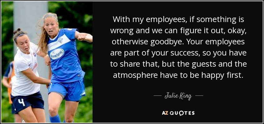 With my employees, if something is wrong and we can figure it out, okay, otherwise goodbye. Your employees are part of your success, so you have to share that, but the guests and the atmosphere have to be happy first.