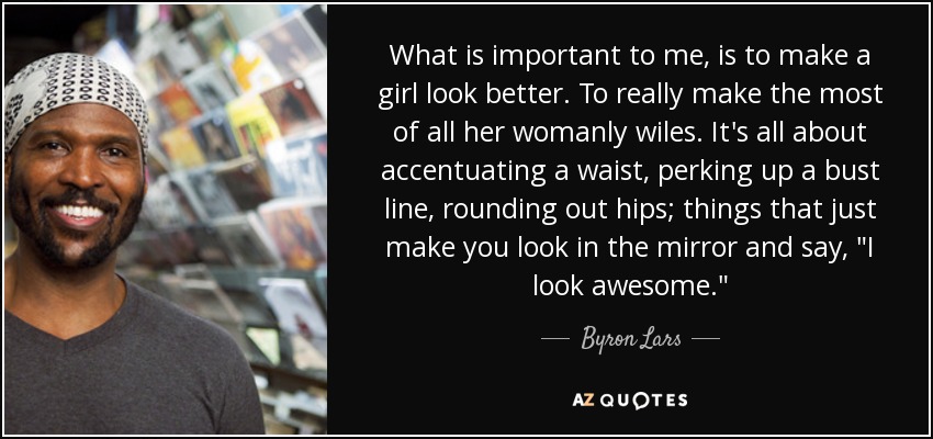 What is important to me, is to make a girl look better. To really make the most of all her womanly wiles. It's all about accentuating a waist, perking up a bust line, rounding out hips; things that just make you look in the mirror and say, "I look awesome."