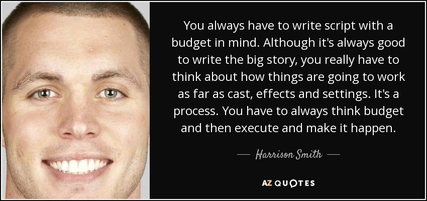 You always have to write script with a budget in mind. Although it's always good to write the big story, you really have to think about how things are going to work as far as cast, effects and settings. It's a process. You have to always think budget and then execute and make it happen.