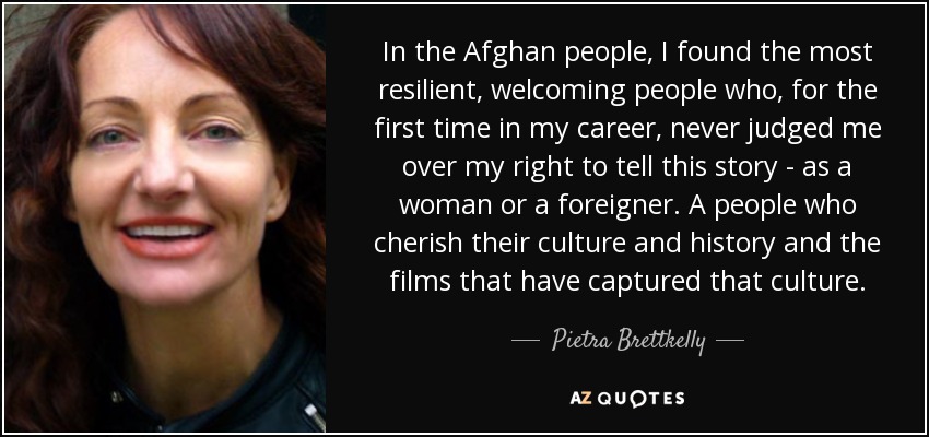 In the Afghan people, I found the most resilient, welcoming people who, for the first time in my career, never judged me over my right to tell this story - as a woman or a foreigner. A people who cherish their culture and history and the films that have captured that culture.