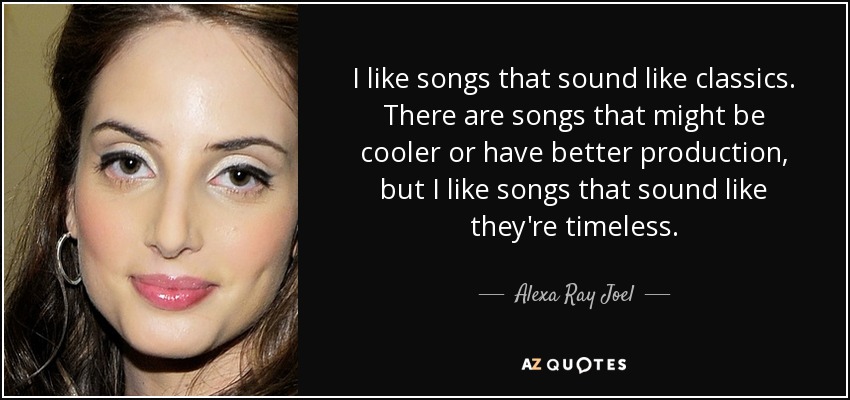 I like songs that sound like classics. There are songs that might be cooler or have better production, but I like songs that sound like they're timeless.