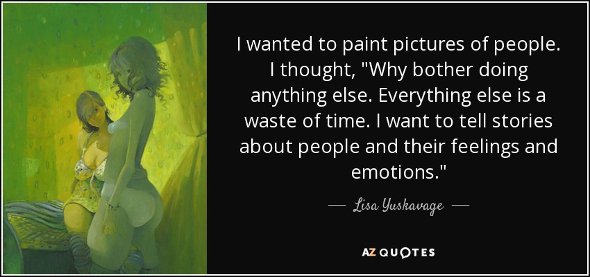 I wanted to paint pictures of people. I thought, "Why bother doing anything else. Everything else is a waste of time. I want to tell stories about people and their feelings and emotions."