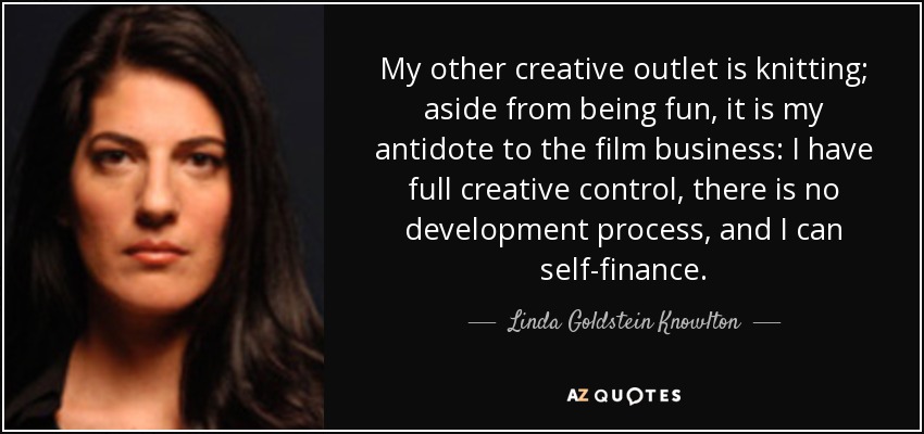 My other creative outlet is knitting; aside from being fun, it is my antidote to the film business: I have full creative control, there is no development process, and I can self-finance.