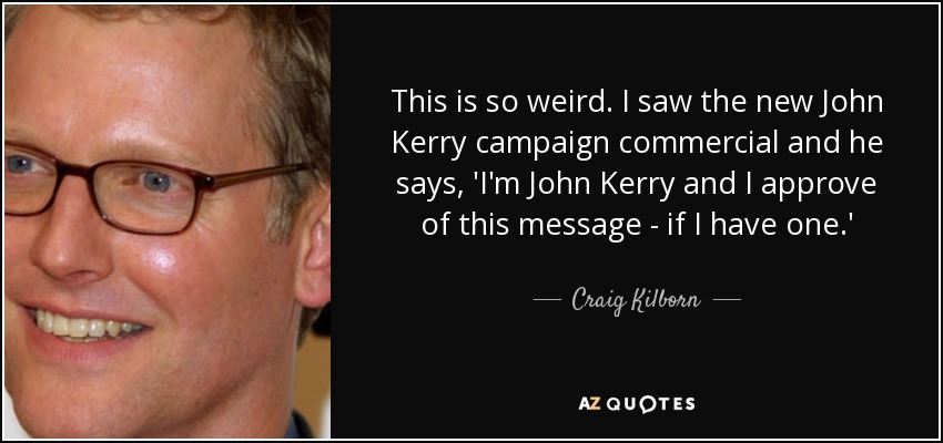 This is so weird. I saw the new John Kerry campaign commercial and he says, 'I'm John Kerry and I approve of this message - if I have one.'