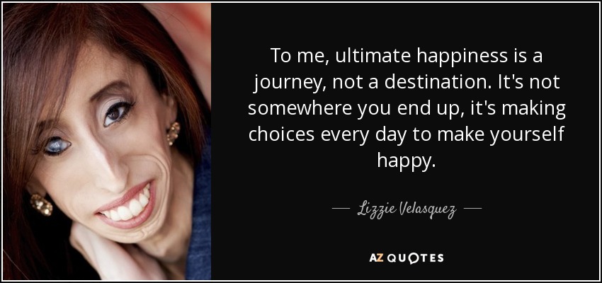 To me, ultimate happiness is a journey, not a destination. It's not somewhere you end up, it's making choices every day to make yourself happy.