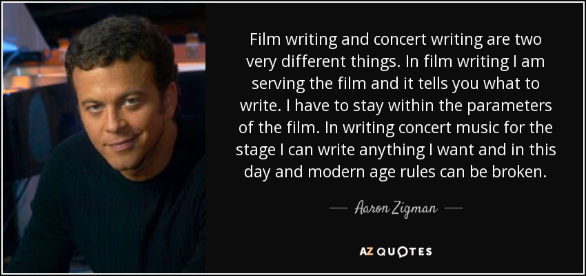 Film writing and concert writing are two very different things. In film writing I am serving the film and it tells you what to write. I have to stay within the parameters of the film. In writing concert music for the stage I can write anything I want and in this day and modern age rules can be broken.