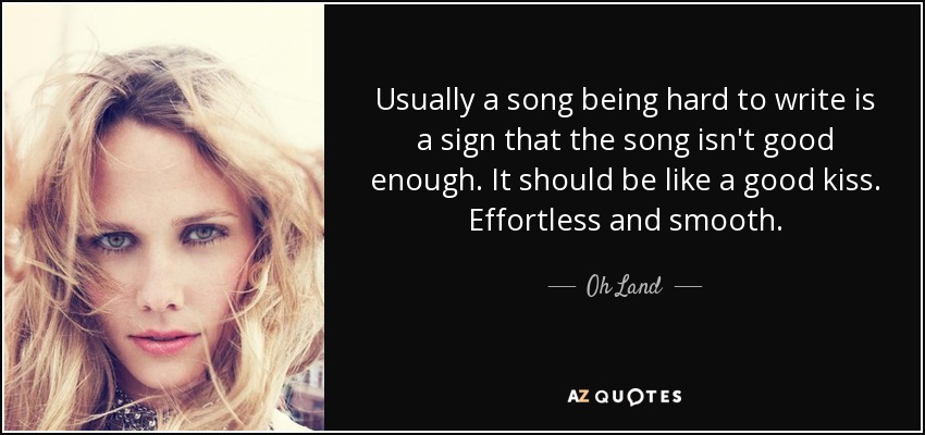 Usually a song being hard to write is a sign that the song isn't good enough. It should be like a good kiss. Effortless and smooth.