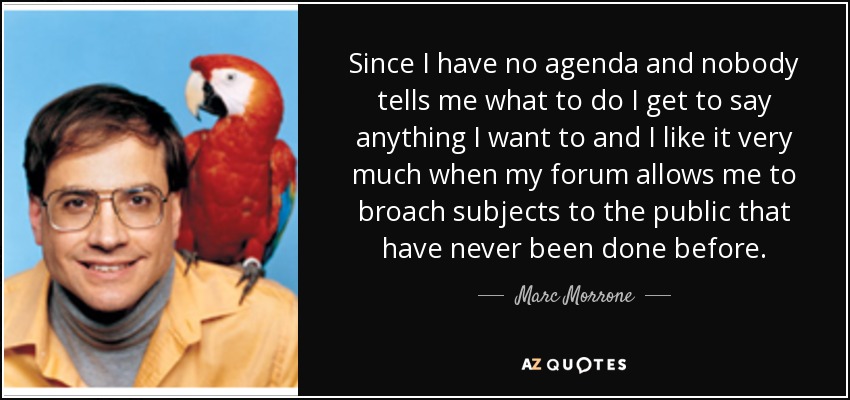 Since I have no agenda and nobody tells me what to do I get to say anything I want to and I like it very much when my forum allows me to broach subjects to the public that have never been done before.