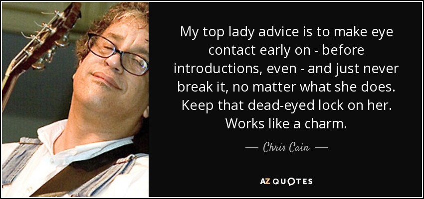 My top lady advice is to make eye contact early on - before introductions, even - and just never break it, no matter what she does. Keep that dead-eyed lock on her. Works like a charm.