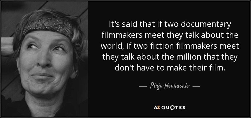 It's said that if two documentary filmmakers meet they talk about the world, if two fiction filmmakers meet they talk about the million that they don't have to make their film.