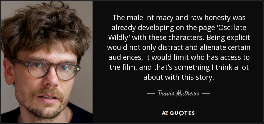 The male intimacy and raw honesty was already developing on the page 'Oscillate Wildly' with these characters. Being explicit would not only distract and alienate certain audiences, it would limit who has access to the film, and that's something I think a lot about with this story.