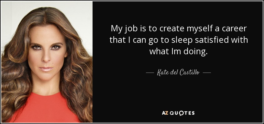 My job is to create myself a career that I can go to sleep satisfied with what Im doing.