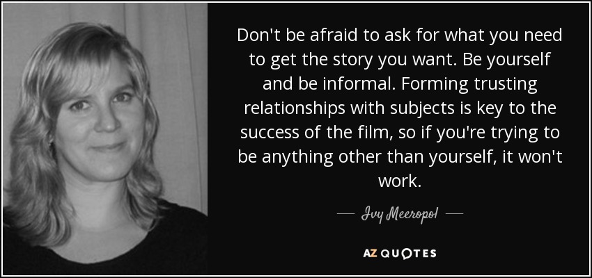 Don't be afraid to ask for what you need to get the story you want. Be yourself and be informal. Forming trusting relationships with subjects is key to the success of the film, so if you're trying to be anything other than yourself, it won't work.