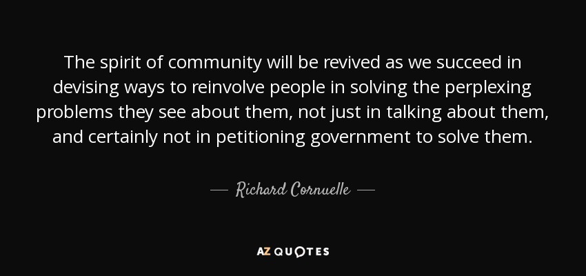 The spirit of community will be revived as we succeed in devising ways to reinvolve people in solving the perplexing problems they see about them, not just in talking about them, and certainly not in petitioning government to solve them.